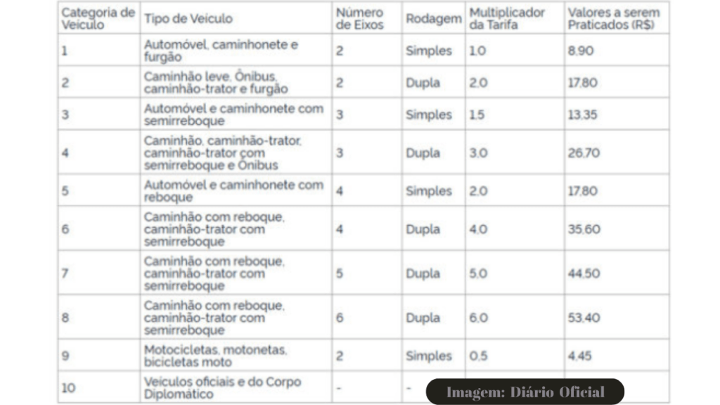 A autorização para reajustar os valores dos pedágios em 11,3%, aprovada pela Agência Nacional de Transportes Terrestres (ANTT), consta na edição de terça-feira (25) no Diário Oficial da União. Os Novos valores entram em vigor, 0h desta sexta-feira (28).