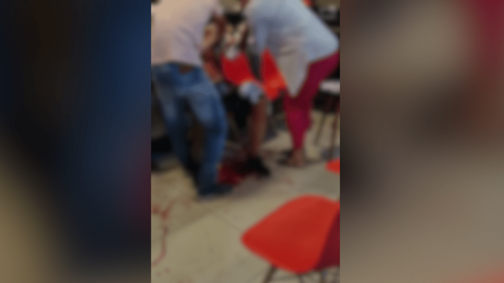 O incidente foi capturado por uma câmera de monitoramento no local, revelando que a agressão ocorreu pouco depois das 22h. As imagens mostram a vítima sentada do lado de fora do comércio, onde opera uma esfiharia. Um veículo estacionou ao seu lado, e a situação escalou para uma briga, resultando no jovem sendo esfaqueado.
