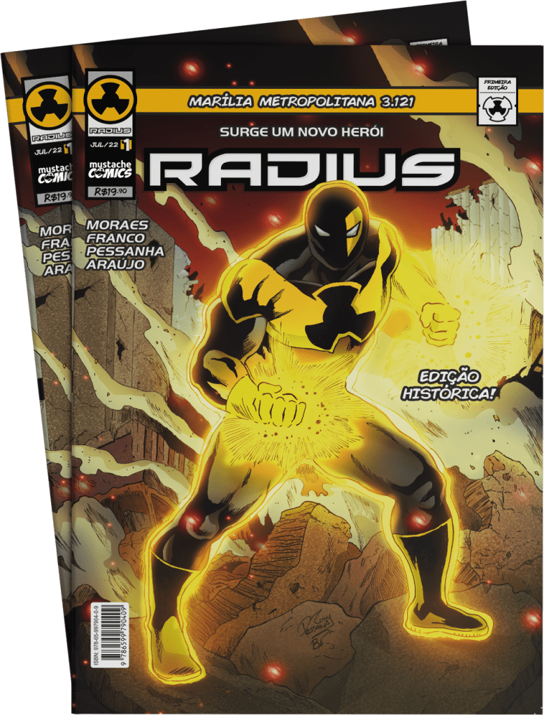 A ideia surgiu há 27 anos, em 1996, quando Tiago começou a criar e escrever o personagem Radius durante uma aula de português. Esse projeto, então, começou a tomar forma em 2020 durante a quarentena por conta da Covid-19. Dois anos depois, em julho de 2022, a Edição nº 1 foi lançada.