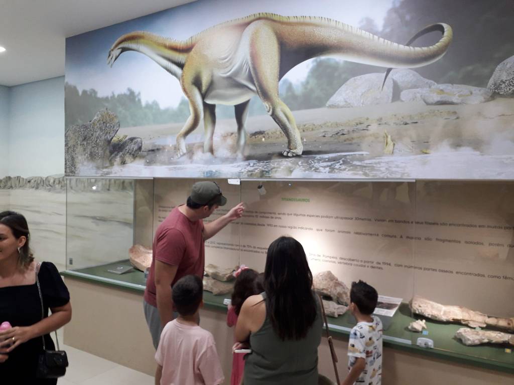 A réplica do Dino Titã fica na área externa do museu tem 3,90m de altura por 12m de comprimento, pesa quase uma tonelada. Já a réplica do Abelissauro tem 1,80m por 4m de comprimento e fica dentro do Museu. As esculturas fazem muito sucesso.