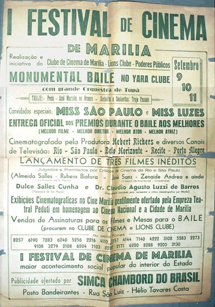 Em 1960, o Festival de Cinema em Marília fez história como o primeiro festival de cinema de todo o Brasil, conquistando reconhecimento internacional. Naquela oportunidade, e na sequência de suas edições, atraiu para Marília grandes celebridades da indústria cinematográfica nacional da época. Essa realização pioneira precedeu o famoso Festival de Gramado, que teve início em 1973. Agora, após um hiato, Marília se prepara para reviver essa tradição cinematográfica.