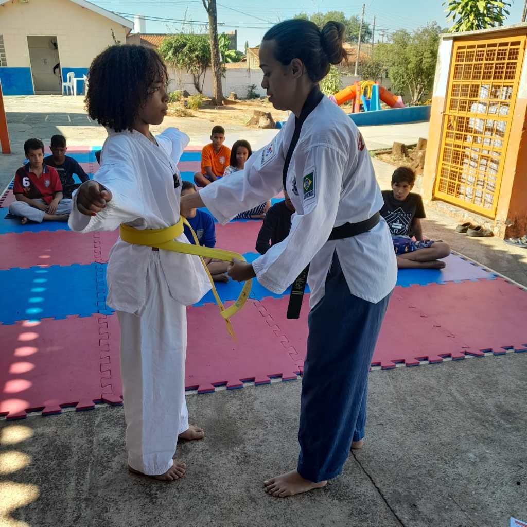 É importante destacar que as aulas de taekwondo já vinham sendo disponibilizadas no SCFV Santa Antonieta pela professora de Educação Física e responsável pela iniciativa, Jéssica Martins, e os praticantes mais experientes foram convidados pelo mestre Camilo Bueno, professor de Educação Física no colégio Cristo Rei e mestre em taekwondo, a participarem do Festival de Taekwondo. A competição está programada para acontecer neste domingo, dia 3 de dezembro, no Cristo Rei. “O taekwondo vem sendo um grande aliado para nossas crianças, pois incentiva o comparecimento ao serviço de convivência, ensina respeito, disciplina e cooperação. O convite feito pelo mestre Camilo foi muito especial para os alunos, pois assim podem vivenciar um ambiente de competição e adquirir experiência”, disse a professora Jéssica Martins.