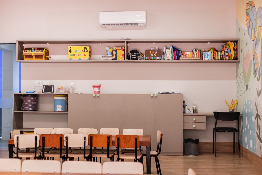 As salas de aula do Colégio Água Viva são climatizadas, oferecendo um ambiente confortável para o aprendizado. Essa estrutura contribui para o bem-estar dos estudantes, criando um espaço propício para o desenvolvimento acadêmico.