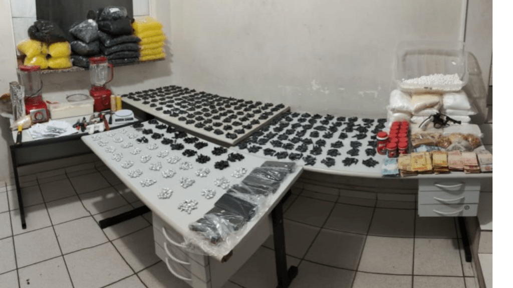 A operação resultou na apreensão de aproximadamente 21 quilos de cocaína e crack, diversos pinos plásticos, mais de R$ 23 mil em dinheiro e um revólver calibre 38 sem munição e sem numeração. Nas mesas, os policiais encontraram ainda microtubos plásticos vazios e preenchidos com drogas.