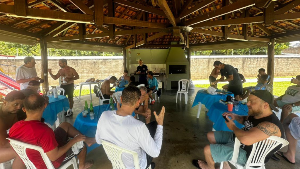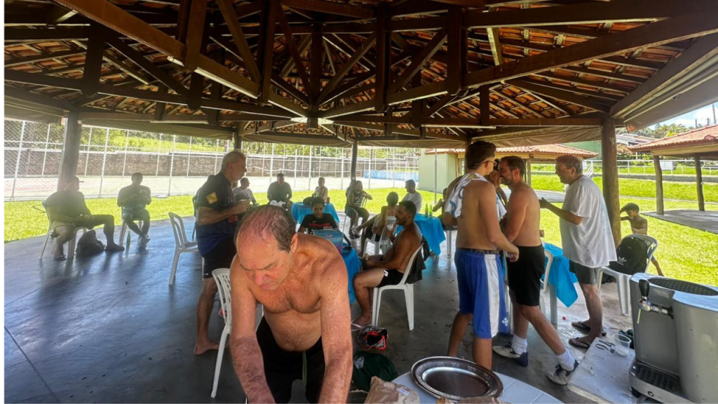 Mensalmente, os participantes contribuem para realizar um churrasco saboroso, em um ambiente acolhedor e receptivo, características marcantes desse grupo unido. Hoje é domingo, e no Village do Bosque, a celebração vai além das quatro linhas. São 20 anos de amizade, respeito e, é claro, muito futebol.