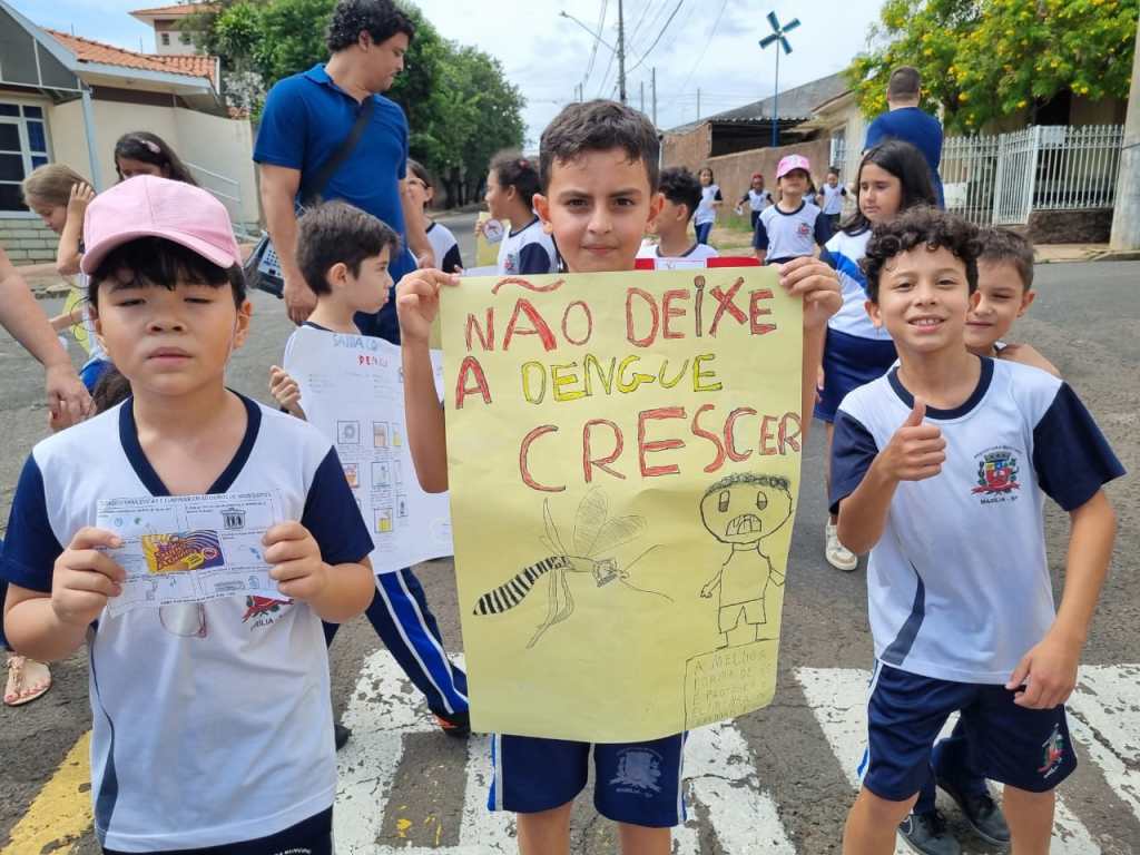A Educação Municipal de Marília também intensificou o trabalho contra a dengue, ensinando aos alunos sobre os perigos do Aedes aegypti e como evitar a proliferação do mosquito, transformando as crianças em multiplicadores do saber em suas casas e nas ruas. Na última sexta-feira, dia 23 de fevereiro, estudantes da Escola Municipal de Ensino Fundamental (Emef) ‘Professora Edméa Braz Rojo Sola’, no bairro Somenzari, zona Oeste de Marília, realizaram passeata para conscientizar os moradores do bairro. A atividade externa fez parte da conclusão de um ciclo de atividades ministradas durante a semana com os mais de 430 alunos, do 1º ao 5º ano do Ensino Fundamental.