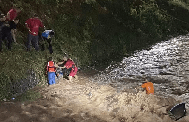 Antes mesmo da chegada dos bombeiros, um morador se arriscou para ajudar as vítimas e entrou no córrego. Porém, devido à forte correnteza, ele também precisou ser resgatado pelas equipes de emergência.