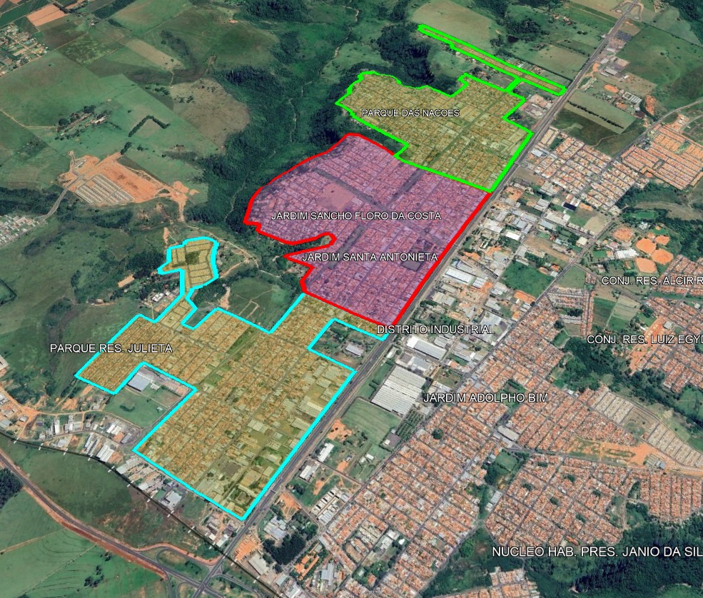 A outra NAV está passando por bairros da zona Norte. São três áreas nomeadas com as cores: Verde – Parque das Nações; Vermelho – Jardim Sancho Floro da Costa, Jardim Liliana, Jardim Renata e Jardim Santa Antonieta; Azul – Parque Residencial Julieta. Cada área receberá a nebulização uma vez por semana nesta sequência: verde, vermelho e azul. (ver no mapa).