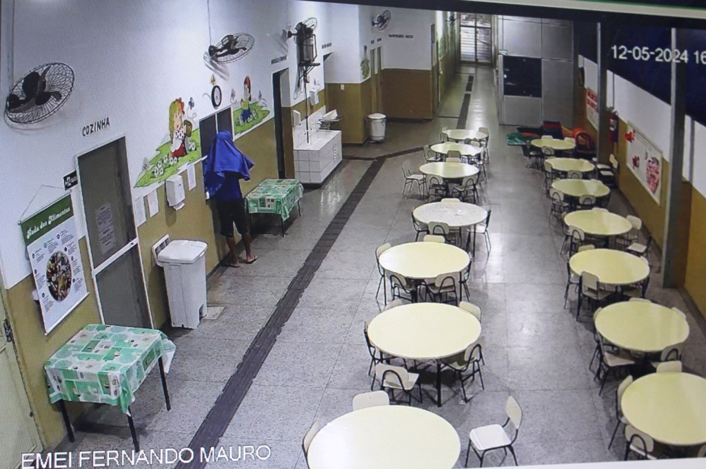 A invasão e o furto ocorreram entre 16h35 e 16h40 de domingo, dia 12 de maio. A Emei Fernando Mauro fica na rua Aimorés, nº 38, no bairro Salgado Filho, região Oeste de Marília. Ao entrar nas dependências da escola, logo após pular o portão de entrada, o homem não cobriu o rosto. Mas quando avançou para o prédio, o ladrão cobriu a cabeça com uma roupa. Nas imagens, ele é visto tentando entrar na cozinha da escola. Ele deixa a escola levando uma panela. Os vigilantes da Ronda Azul, ao identificar a ação criminosa, acionaram a Polícia Militar. O suspeito foi preso pelos policiais momentos depois em posse do objeto de furto.