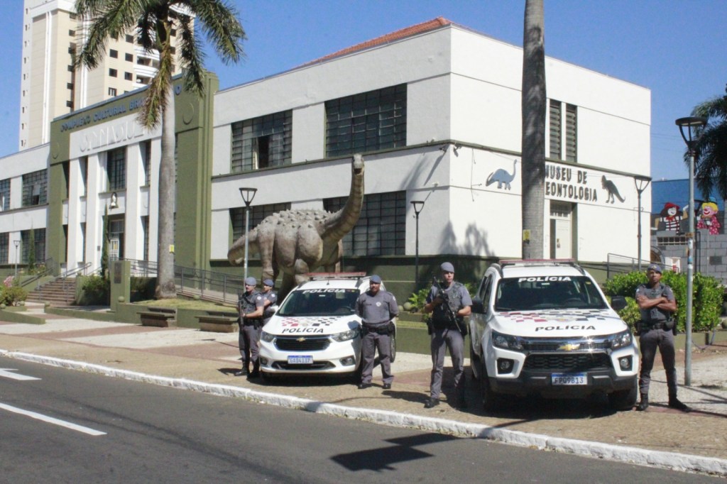 Praça Saturnino de Brito, praça da Bandeira, Paço Municipal, Complexo Cultural ‘Braz Alécio’, Museu de Paleontologia e a estátua em tamanho natural do Dino Titã de Marília serviram de inspiração para sessões de fotos institucionais para a Polícia Militar na manhã desta sexta-feira, dia 17 de maio de 2024. Viaturas e guarnições de policiais militares, além das rondas motorizadas, estiveram nestes locais para os registros fotográficos pelo setor de comunicação social da corporação, conhecido como P5.