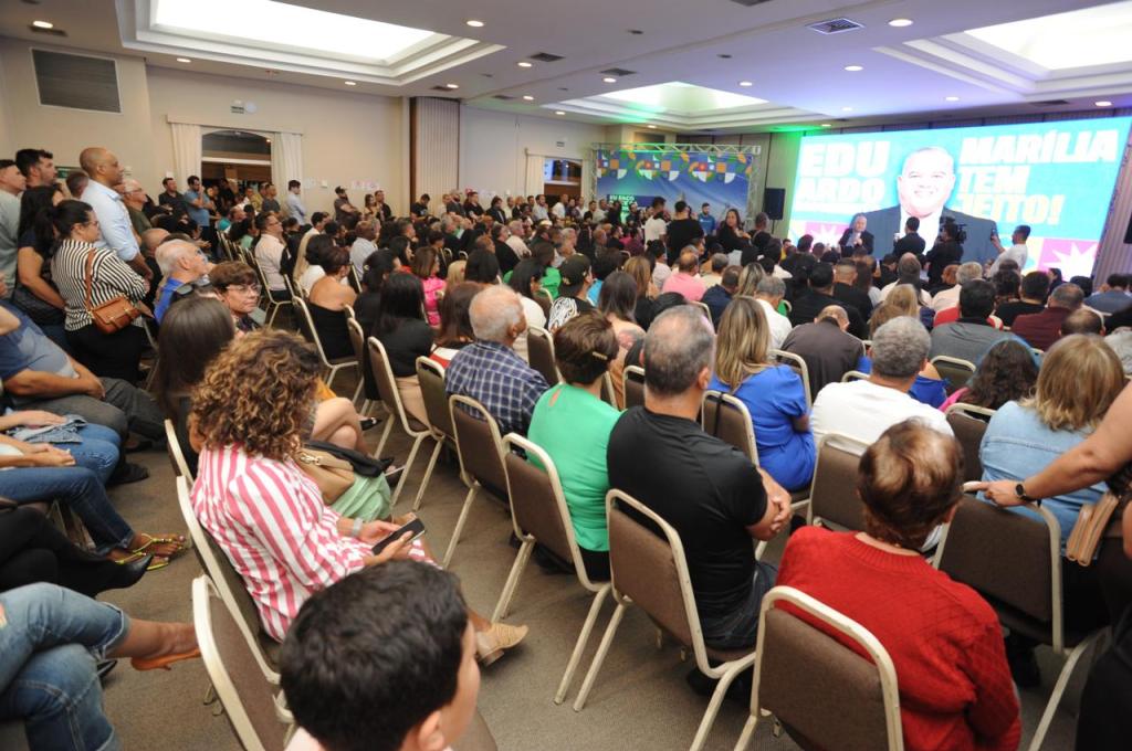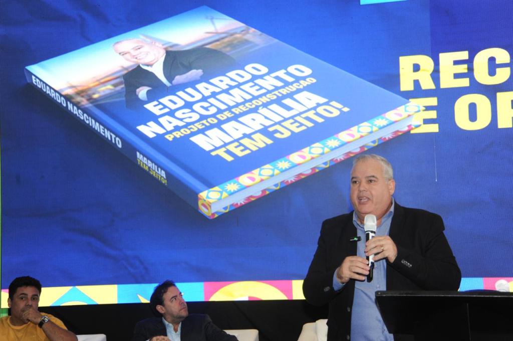 Na noite desta sexta-feira (5), Eduardo Nascimento lançou sua pré-candidatura a Prefeito de Marília pelo partido Republicanos em um evento emocionante realizado no Sun Valley Hotel, reunindo cerca de 1.000 pessoas. O lançamento contou com a presença de lideranças de diversos segmentos da sociedade, autoridades municipais, regionais, estaduais e nacionais de destaque, como o Deputado Federal Vinícius Carvalho, o Deputado Coronel Tadeu, e Tupãzinho, ídolo corinthiano e ex-vereador de Tupã. Também estiveram presentes Regiane Melos, presidente do União Brasil, Juliano da Campestre, presidente do PRD de Marília, além dos vereadores Júnior Féfin e Vânia Ramos, e os 54 pré-candidatos a vereador pelos partidos União Brasil, Republicanos e PRD.