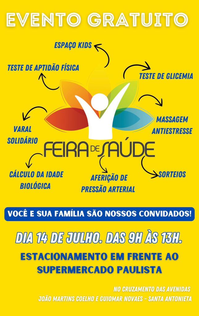 A Feira de Saúde oferecerá uma ampla gama de atividades e serviços gratuitos voltados ao bem-estar e saúde da população. Entre os serviços disponíveis estarão: