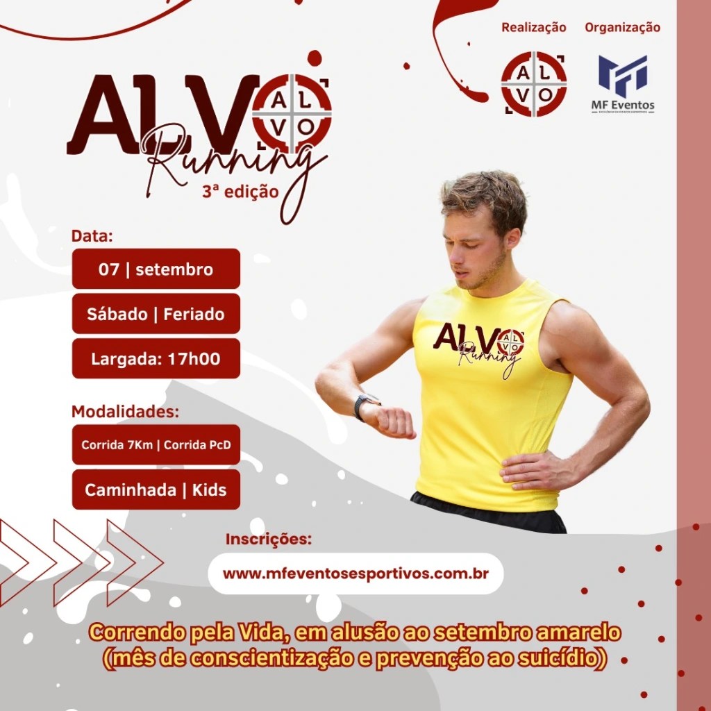 O evento é realizado em alusão ao Setembro Amarelo, mês dedicado à conscientização e prevenção ao suicídio, e traz o tema “Correndo pela Vida”. A Alvo Running contará com diversas modalidades, incluindo uma corrida de 7 km, uma corrida de 7 km para Pessoas com Deficiência (PcD), uma caminhada de 5 km e uma corrida Kids.