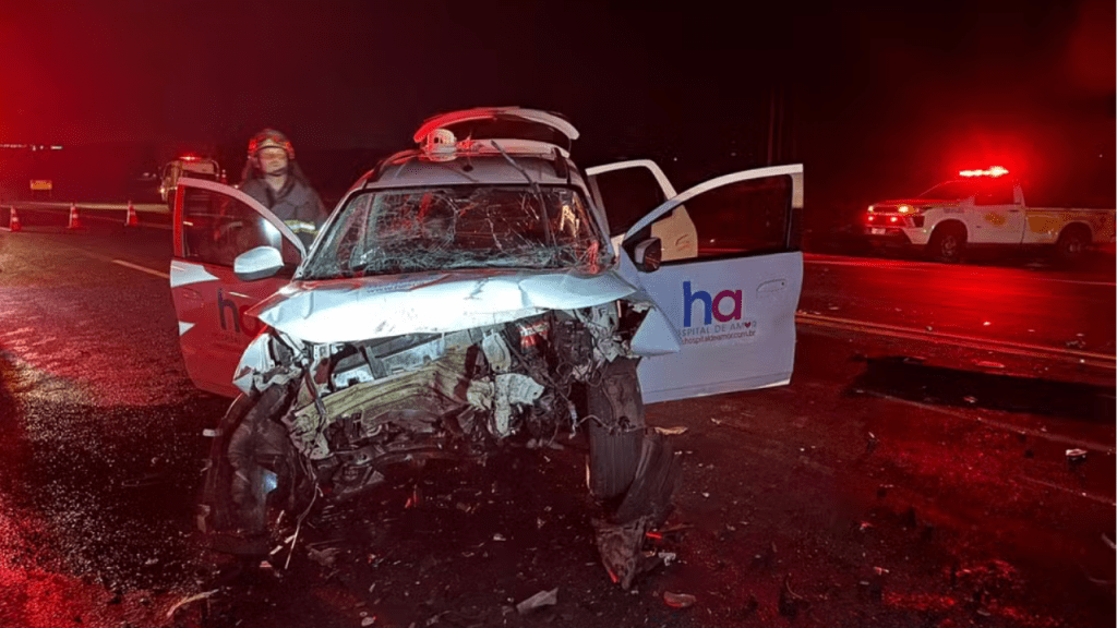 O impacto foi tão forte que um terceiro carro, também incapaz de parar a tempo, colidiu com os dois veículos à frente. A força do choque fez com que este automóvel invadisse a pista contrária, onde bateu de frente com um carro que transportava quatro profissionais de enfermagem do Hospital do Amor.