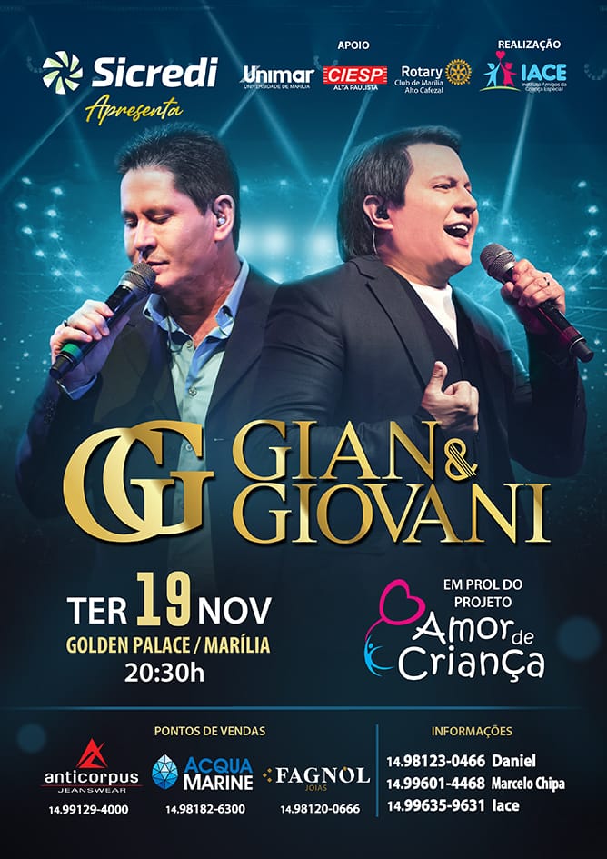 Em destaque, o episódio também fala sobre o aguardado show beneficente da dupla sertaneja Gian e Giovani, que acontecerá no próximo dia 19 de novembro, no Golden Palace, em Marília. O evento promete ser uma grande festa e uma oportunidade de contribuir para a continuidade do trabalho do Projeto Amor de Criança. No podcast, os ouvintes poderão conferir todos os detalhes sobre a festa e como podem participar desse evento solidário.