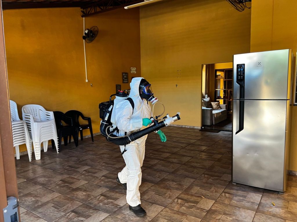 Nesta quarta-feira (8), cinco quadras foram atendidas com a nebulização, sendo que o total é de 20 quadras que serão visitadas no Aniz Badra.