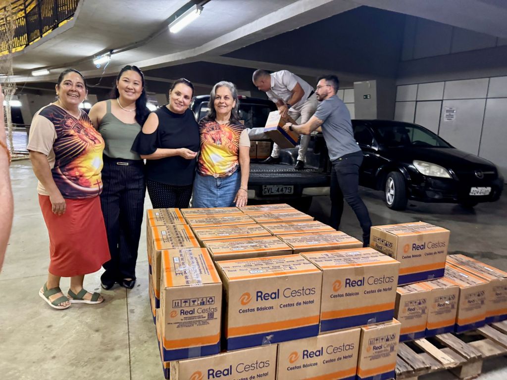 Acompanharam a presidente do Fundo a coordenadora Nayara Kushikawa e a voluntária Akemi Kushikawa. Antes da entrega das cestas, os presentes no ginásio fizeram uma oração de agradecimento.