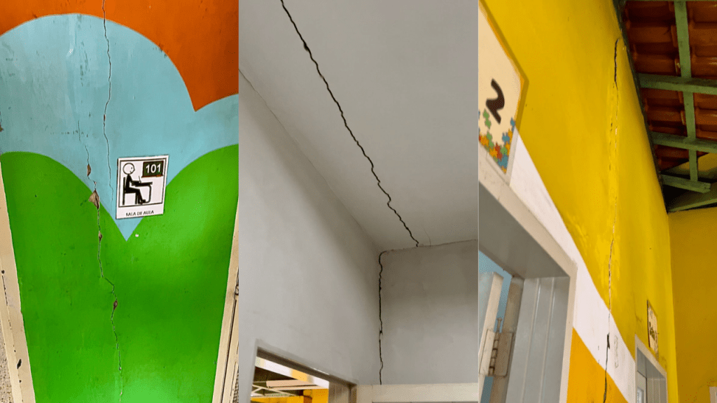 “Estamos indignados com as condições precárias que encontramos nesta escola. Desde 2023, há duas salas de aula com rachaduras e sérios riscos de desabamento. Fizemos a interdição imediata destes locais e determinei que a nossa Secretaria de Obras providencie os reparos com urgência. Nossas crianças precisam de segurança e um ambiente adequado para exercer as atividades escolares”, frisou o prefeito Vinicius Camarinha.