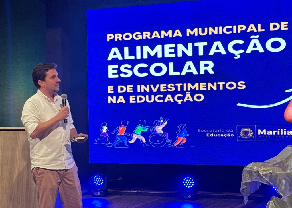 A Prefeitura de Marília, por meio da Secretaria Municipal da Educação, realizou na segunda-feira (dia 3), às 14 horas, no Teatro Municipal de Marília, a cerimônia de lançamento do Programa Municipal de Alimentação e Investimentos para a Educação.