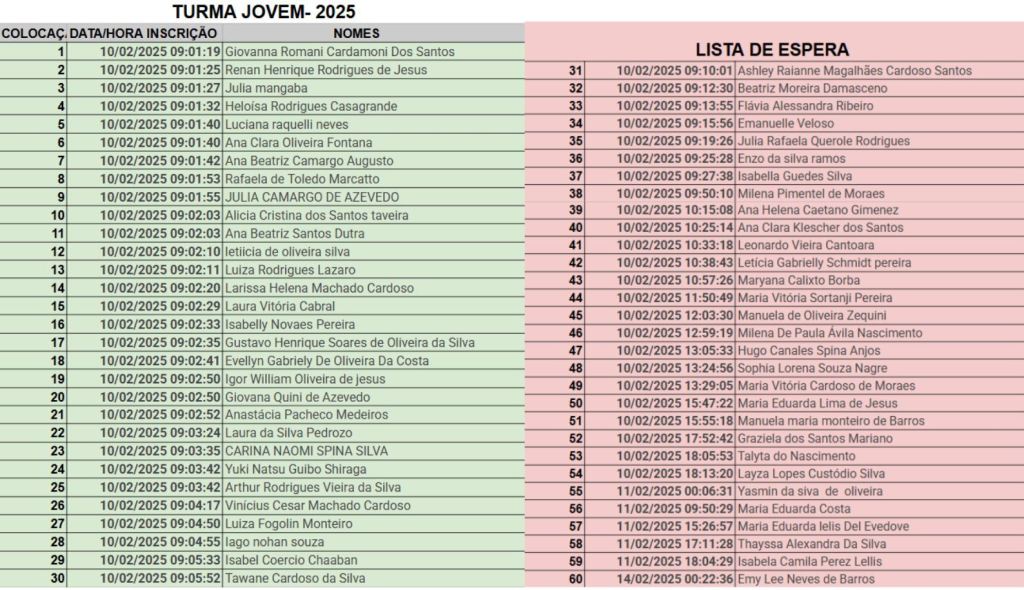 O Projeto atenderá 180 alunos de todas as idades, sendo que cada turma é contemplada com 30 alunos, primeiros inscritos, e havendo desistência de participantes, serão chamados os alunos que permanecem em lista de espera.