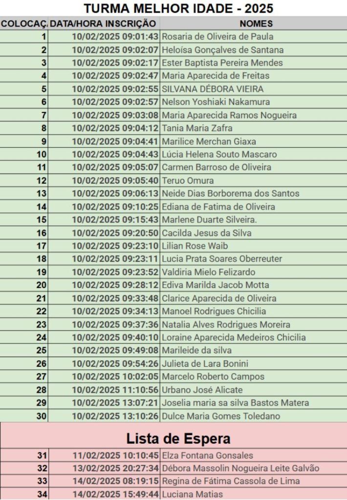 Turma Melhor Idade (50 anos acima) – quartas-feiras – 09 às 12h