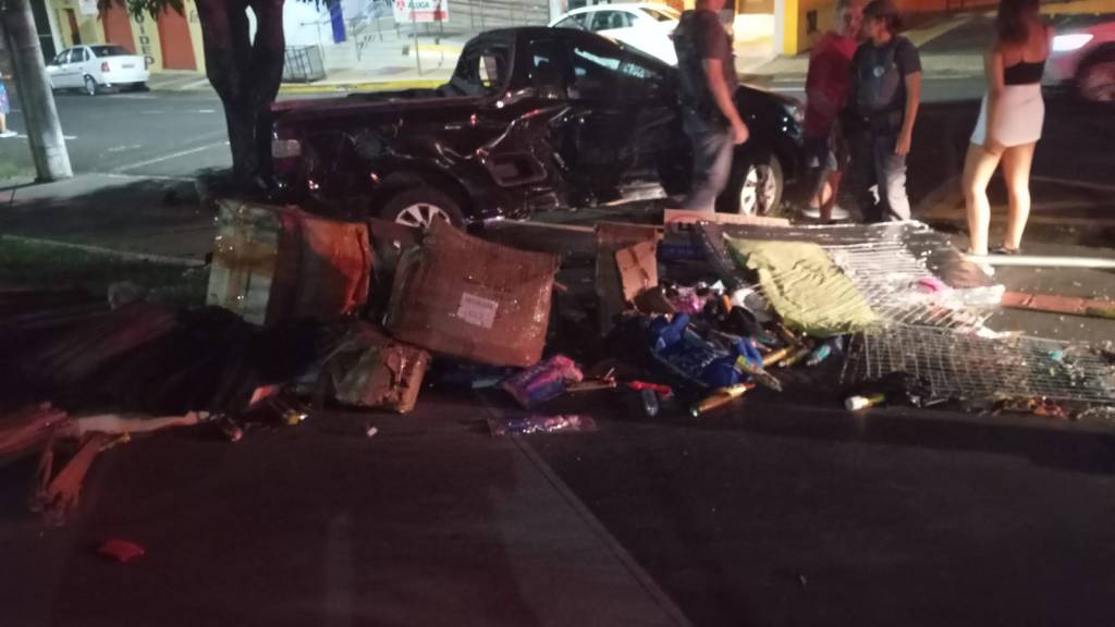 Um acidente envolvendo uma pick-up Saveiro e um Ford Fiesta aconteceu na madrugada deste sábado (1°), no cruzamento da Avenida Pedro de Toledo com a Rua 9 de Julho, na região Central de Marília. O impacto foi tão forte que o ultilitário foi parar na calçada da Praça Maria Izabel, ao lado da Igreja São Bento.