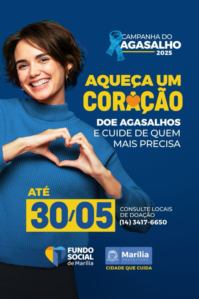 “Aqueça um coração. Doe agasalhos e cuide de quem mais precisa”. Esse é o tema da Campanha do Agasalho 2025 do Fundo Social de Marília. O lançamento oficial aconteceu na tarde desta terça-feira (15), no auditório da Prefeitura Municipal. A campanha irá até 30 de maio.