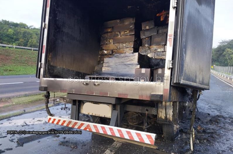 Um caminhão IVECO carregado com produtos pegou fogo na manhã desta segunda-feira, 9 de junho, na Rodovia Engenheiro João Batista Cabral Rennó (SP-225), em Bauru (100 quilômetros de Marília). O incêndio ocorreu por volta das 7h, na altura do km 236,334, e provocou a interdição total da pista.
