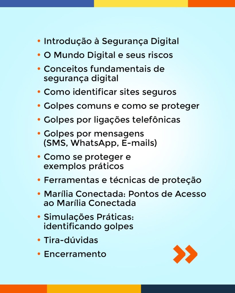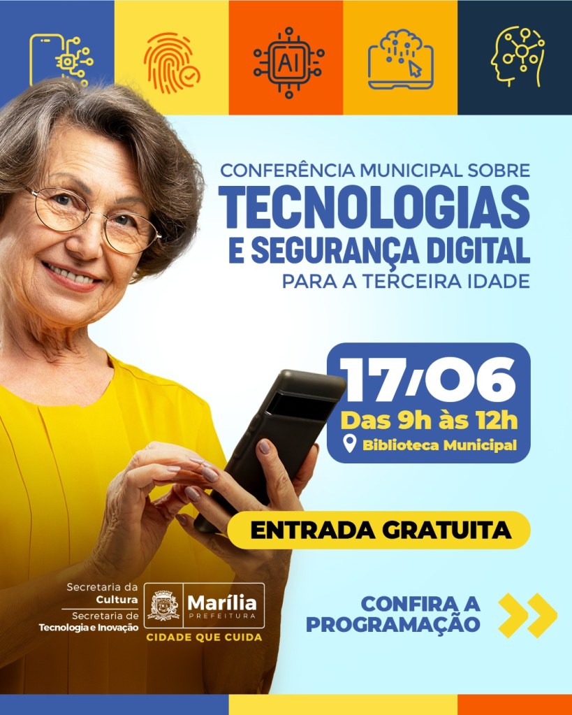 A conferência é oferecida pela Prefeitura de Marília, por meio das secretarias da Cultura e de Tecnologia e Inovação, e tem por objetivo orientar e conscientizar a população da terceira idade sobre as ameaças digitais e como proteger-se de golpes comuns em sites, ligações telefônicas, e-mails e mensagens. “É trazer ao usuário o domínio e confiança no uso da internet, principalmente agora com a entrada das IAs (Inteligências Artificiais)”, diz o supervisor do Telecentro e organizador do evento, Pedro Matos Teixeira.