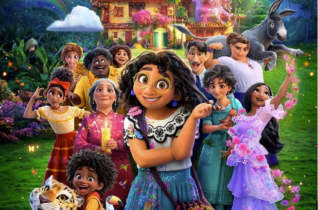 Encanto é o filme de animação da Disney, situado na Colômbia. Nela, a família Madrigal e a comunidade em volta da casa da família é cercada por montanhas, que os deixam protegidos dos maus do mundo. Porém, a família Madrigal é dotada de magia, com cada um dos integrantes da família tendo algum poder mágico que é usado para ajudar a comunidade.