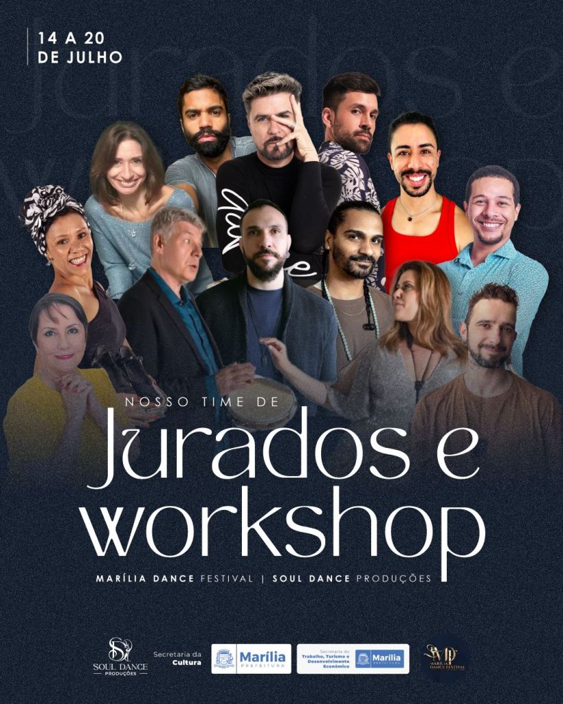 O Festival receberá mais de 2 mil bailarinos de todo o país para participar não apenas das seletivas, mas também dos cursos oferecidos pelo evento. Entre jurados e professores para os Workshops, estão nomes de bailarinos consagrados como Cecília Kerche, Jim Hamilton (EUA), Rafael Trevisan, Zeca Rodrigues, Filipi Ursão, Sassá, Binho Pacheco, Guilherme Riku, Gisele Bellot, Felipe Camarotto, Chris Matallo e a mariliense Valéria Sanches, uma “prata da casa” que tem seu curso muito aguardado em todo país.