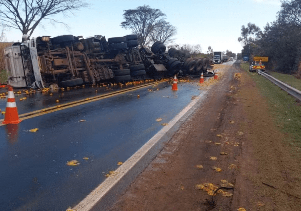 De acordo com a concessionária responsável pela administração da rodovia, o motorista acessou o acostamento, perdeu o controle da direção e acabou tombando o veículo. O caminhão ficou atravessado sobre o acostamento e parte das duas pistas da via, bloqueando totalmente o tráfego nos dois sentidos.