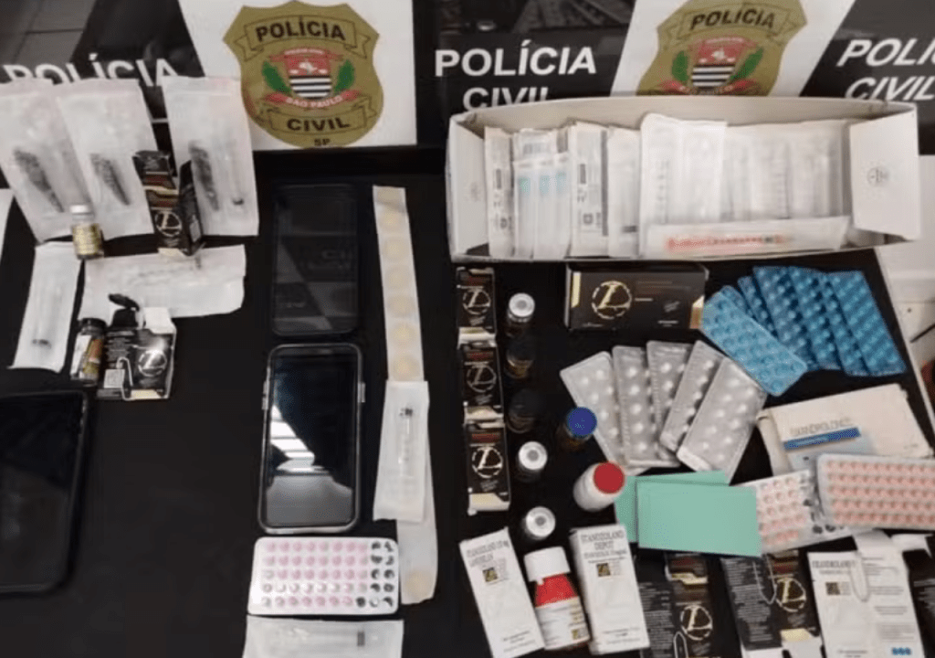 Durante as diligências, os agentes localizaram, na casa de um dos suspeitos, uma grande quantidade de material relacionado à prática criminosa, incluindo centenas de comprimidos, frascos injetáveis, seringas, agulhas e outros produtos. Em um estabelecimento comercial de propriedade do investigado, mais substâncias ilegais foram apreendidas. Produtos semelhantes também foram encontrados na residência de um terceiro envolvido, que segue sob investigação.