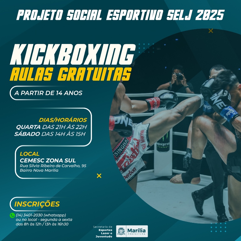 A Prefeitura de Marília, por meio da Secretaria Municipal de Esportes, Lazer e Juventude (SELJ), inicia no próximo dia 13 de agosto aulas gratuitas de Kickboxing por meio do Projeto Social Esportivo da SELJ Marília.