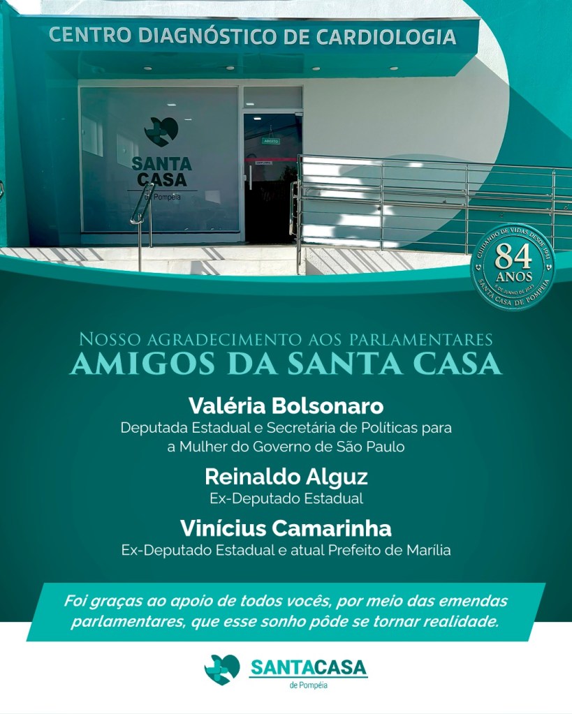 A saúde da população de Pompeia e de outros 19 municípios da região deu um importante passo rumo à excelência e ao atendimento humanizado. No dia 11 de agosto de 2025, foi inaugurado o Centro de Diagnóstico de Cardiologia da Santa Casa de Pompeia, uma estrutura moderna e equipada, que passa a oferecer exames cardiológicos de alta qualidade pelo Sistema Único de Saúde (SUS), convênios e também de forma particular.