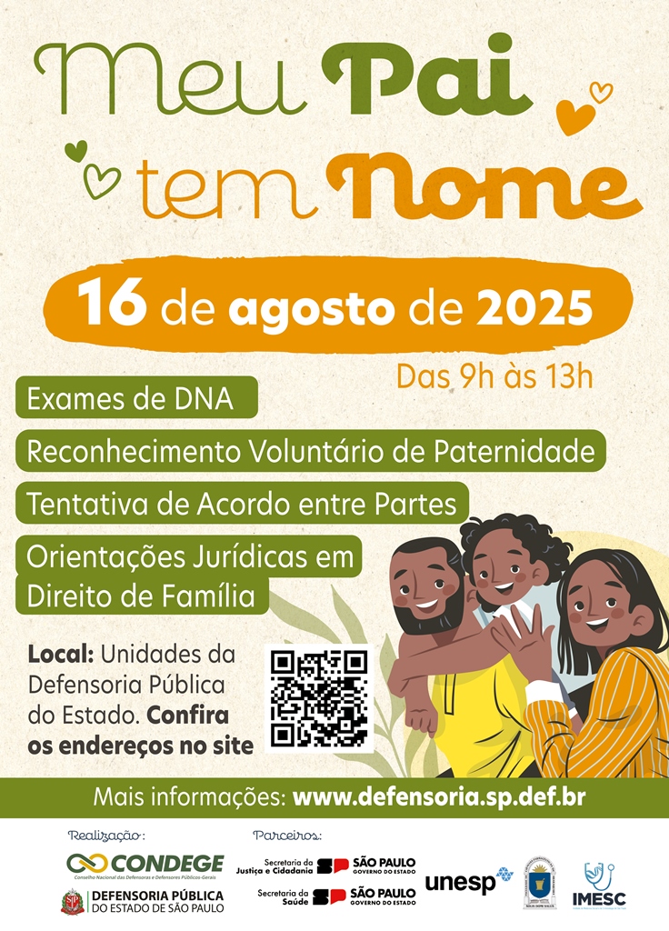 A Prefeitura de Marília, por meio da Secretaria Municipal da Saúde, firmou parceria de apoio ao Projeto “Meu Pai Tem Nome”, que é o Mutirão Nacional de Reconhecimento e Investigação de Paternidade 2025, realizado pelo Condege (Conselho Nacional das Defensoras e Defensores Públicos-Gerais) e Defensoria Pública do Estado de São Paulo.