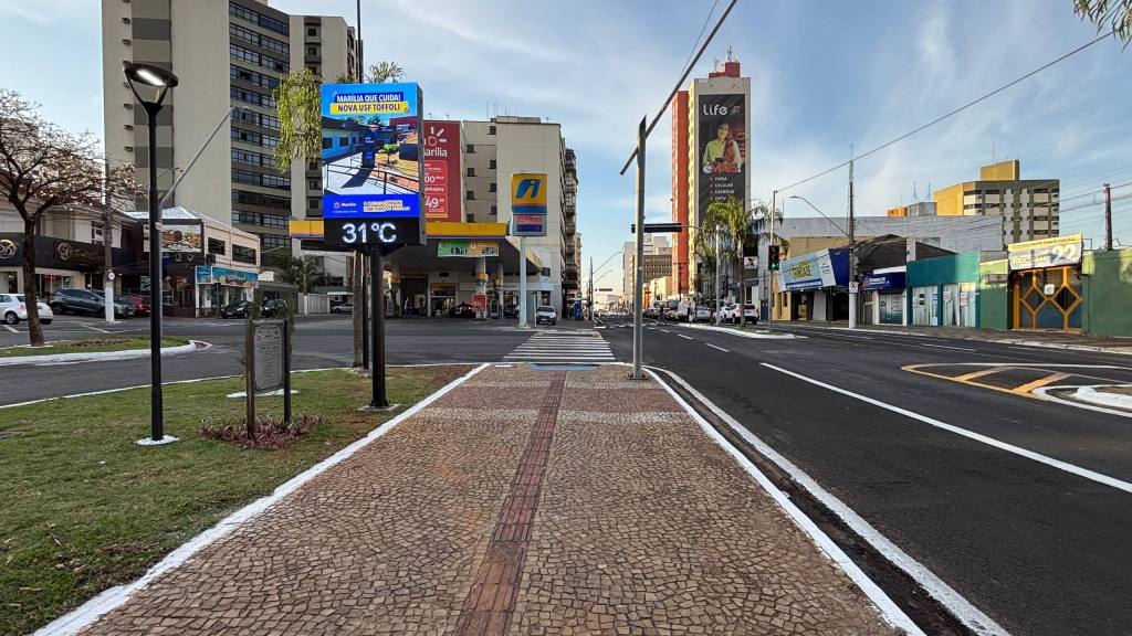 A Prefeitura de Marília, por meio da Secretaria de Tecnologia e Inovação, firmou parceria com a Unimed para a instalação de um moderno relógio digital na Praça Saturnino de Brito, localizada na Avenida Sampaio Vidal. O equipamento, além de marcar as horas e indicar a temperatura, também será utilizado para divulgar serviços municipais, como campanhas de vacinação, operação “Cata-Treco” e outras ações realizadas pela administração.