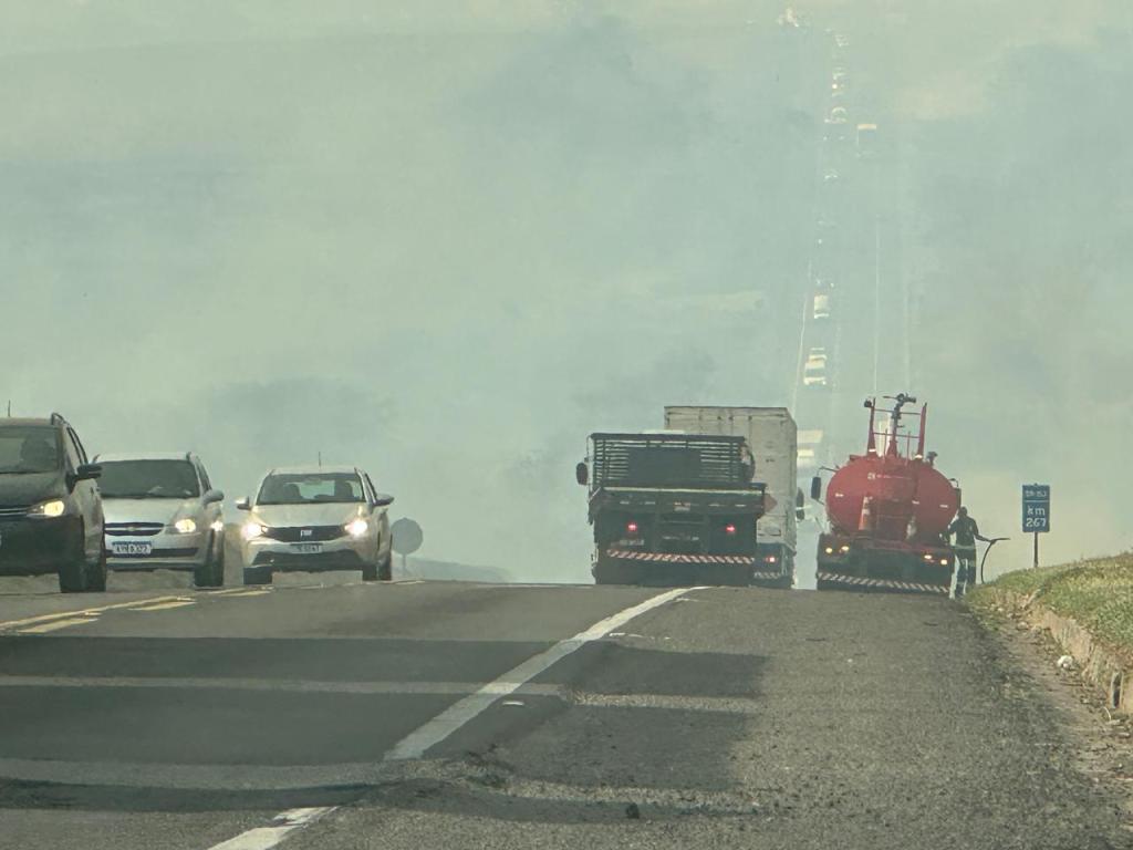 De acordo com informações da Polícia Rodoviária Federal (PRF), o fogo começou por volta das 14h50 e rapidamente se espalhou pela área de mata, provocando intensa fumaça e interdição total da rodovia nos dois sentidos, entre os quilômetros 263 e 268.