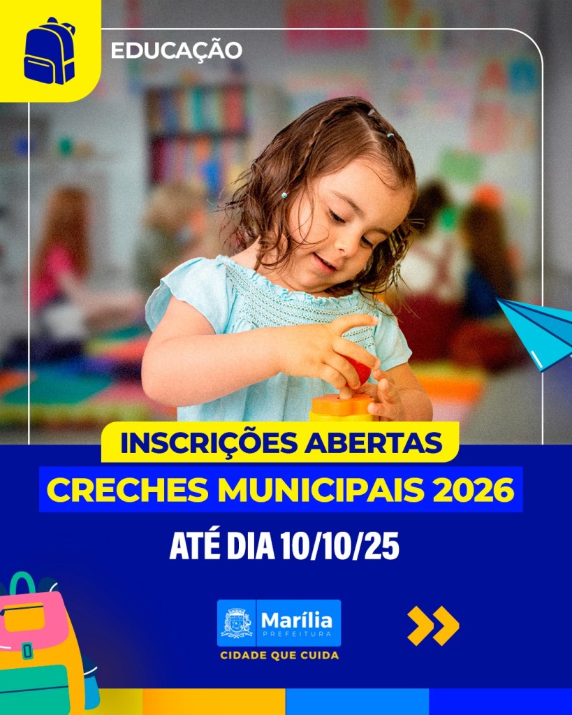 Termina nesta sexta-feira (dia 10), o período de inscrições na Central de Vagas referente ao ano letivo de 2026. A Prefeitura de Marília, por meio da Secretaria Municipal da Educação, ressalta que a partir de 11 de outubro, as inscrições continuam, mas passam a ser organizadas por ordem de registro.