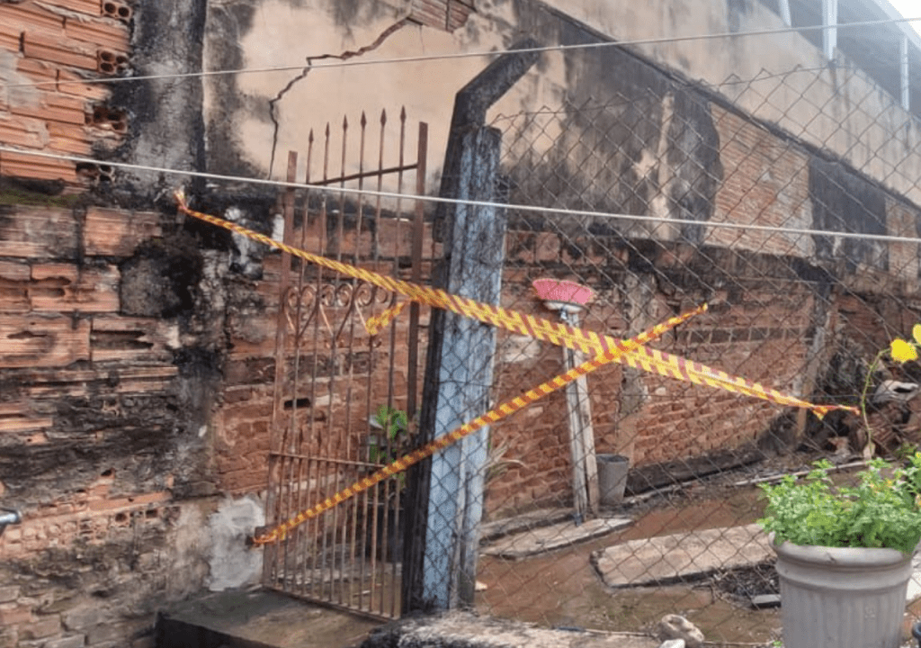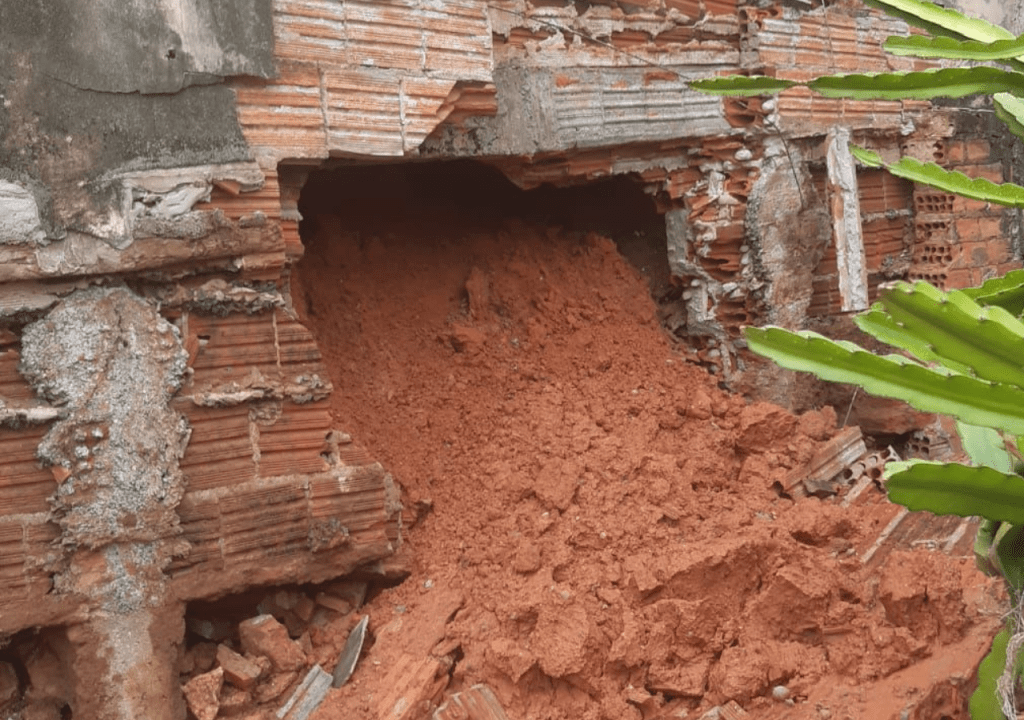 Durante a vistoria técnica, realizada na quarta-feira (29), foi constatado que o muro localizado na divisa com o imóvel da Rua Alfeu Cesar Pedrosa, 295, cedeu completamente, provocando a movimentação de terra e comprometendo a estrutura da casa. O relatório técnico apontou como causa do incidente um vazamento em uma tubulação de abastecimento de água fria situada em frente ao imóvel, o que levou ao encharcamento do solo e ao aumento do empuxo sobre o muro, resultando no colapso.