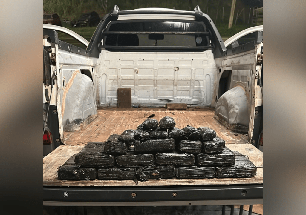 Diante da suspeita, os policiais iniciaram uma busca minuciosa no veículo e localizaram um compartimento oculto, instalado abaixo da carroceria. No interior desse compartimento foram encontrados 10,690 kg de cloridrato de cocaína e 0,945 kg de haxixe.