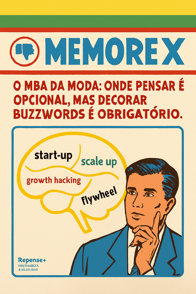 Não é sobre aprender a pensar. É sobre consumir fórmulas prontas, decorar frameworks e vomitar jargões como “go to market”, “CAC”, “LTV”, “escala exponencial” e “playbook de sucesso”.