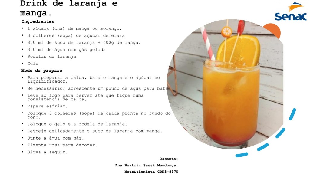 Como alternativa de hidratação nutritiva durante o Carnaval, a docente do Senac Marília compartilha uma receita de drink sem álcool à base de frutas, indicada para consumo em dias de calor intenso.