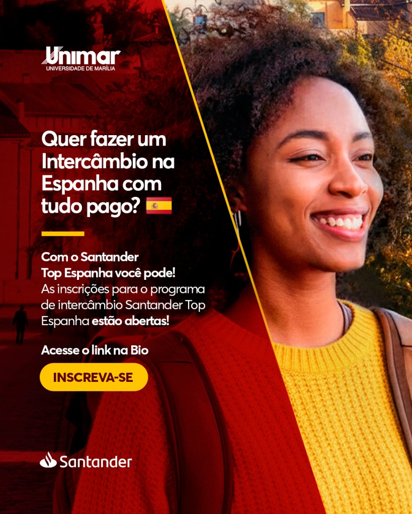 do que uma bolsa de estudos. “O Santander Top España reafirma o compromisso da Unimar com a excelência acadêmica, a inclusão e a formação internacional de sua comunidade. Os interessados devem ficar atentos aos prazos e acompanhar todas as orientações disponíveis no edital e nos canais oficiais da Universidade”, finaliza.