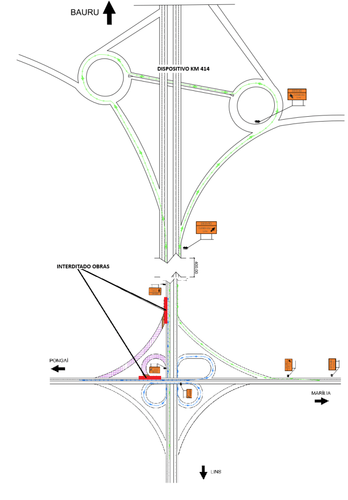 Já o motorista que estiver na SP-300, no sentido Bauru – Pongaí não conseguirá acessar a alça de saída do dispositivo da SP-333. Será necessário seguir pela SP-300 e fazer os três retornos do dispositivo para, então, seguir até o seu destino.