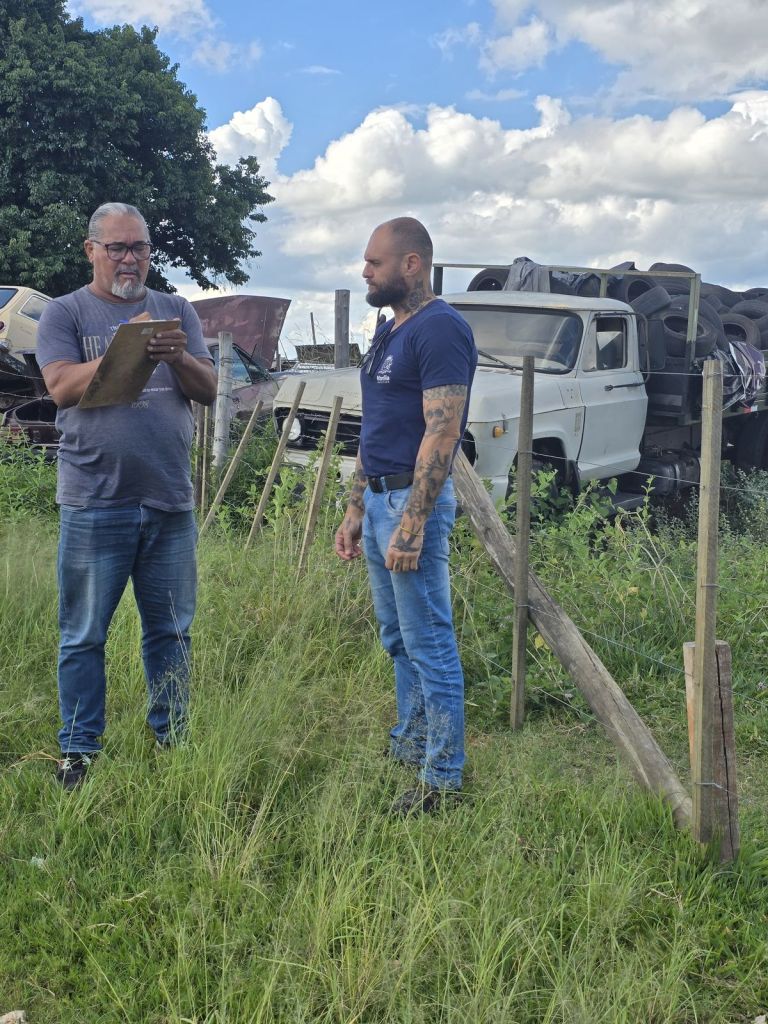 A fiscalização foi conduzida pelo secretário adjunto do Meio Ambiente e Serviços Públicos, Rodrigo Más, que reforçou o caráter da ação. “Foram constatadas diversas irregularidades ambientais e sanitárias, incluindo o armazenamento inadequado de pneus, a presença de recipientes com acúmulo de água e o manejo incorreto de resíduos, além de atividades em desacordo com a legislação vigente”, destacou.